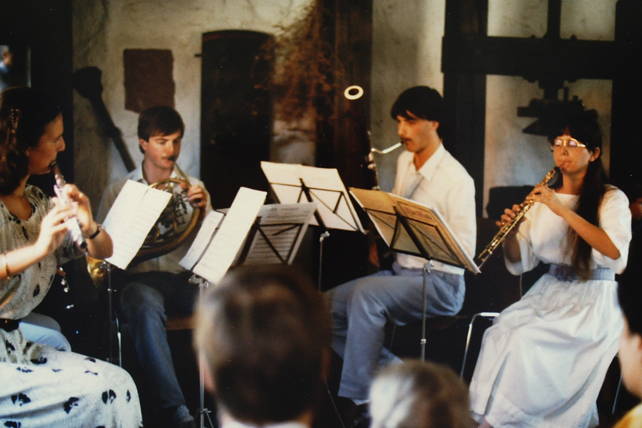 Das Mannheimer Bläserquintett, fünf virtuos spielende junge Musiker, begeistern das Publikum im nahezu überfüllten Probierraum.