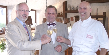 Peter Steverding vom sternedekorierten Isenhof in Knittelsheim kochte in der langen Reihe der Wilhelmshof-Kulinarium - übrigens seit 1986 - zum dritten Mal das anspruchsvolle Sechs-Gänge-Menü. Alles war köstlich und künstlerisch auf dem Teller angerichtet, sei es das Carpacchio von Kaninchen und Ente in Trüffelmarinade, das gebackene Bonbon von Hummer, Steinbut und Saibling auf Gemüsemarmelade oder der heimische Lammrücken auf tomatisiertem Bohnenfrikassee. Der Journalist Peter Frankenstein aus Köln moderierte an beiden Abenden die begleitenden Weine.
