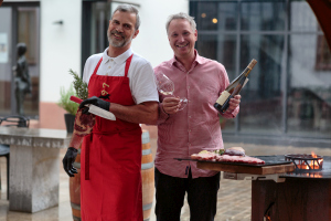 Blick über die Schulter – Metzgermeister Peter Joachim verrät außergewöhnliche Zubereitungsarten; Special Cuts vom Grill, Alte Wutz aus Schwäbisch Hall, Kalbstafelspitz, Flat Iron, Hirschkalbsrücken, Dry aged Roastbeef… mit moderierter Weinverkostung.