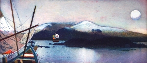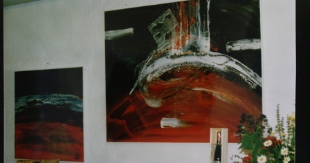 Eine farbintensive Collage, die sich "...lavaartig breit ergießt in unsere Realität", so Karl-Friedrich Geißler bei der Vernissage.