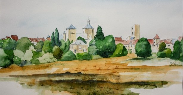 Aquarelle und Radierungen ausstellte.